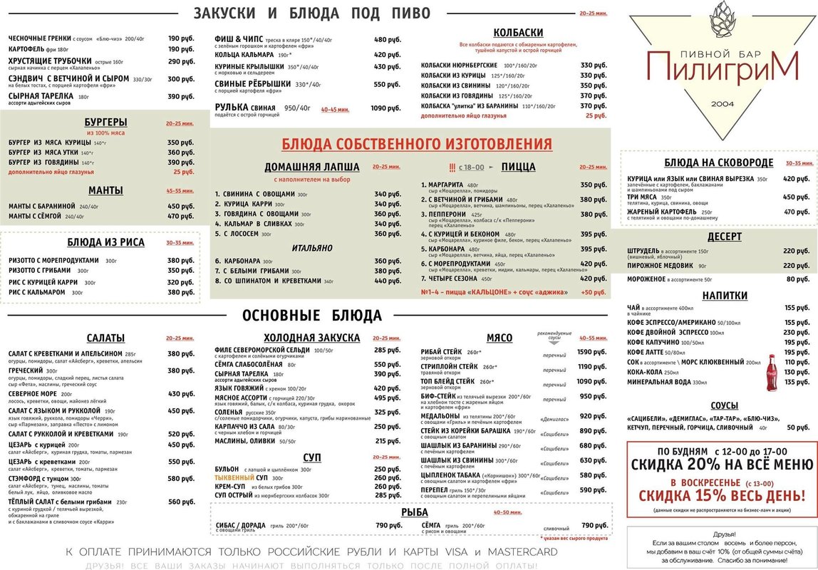 Мне так нравится это заведение, оно на все времена года и любое время суток! Молодцы все: и официанты, и бармены и шеф повар! Блюда вкусные, даже не знаешь какое выбрать каждый раз! Мы бываем и днем с ребёнком, и вечерами ходим на шумные встречи, смотрим футбол или хоккей. Бывает отмечаем дни рождения и юбилеи. Все проходит всегда весело, гости остаются довольными, и мы конечно тоже! Всем рекомендую Пивной Пилигрим от чистого сердца! Спасибо за такое место на Сухаревке в Москве.